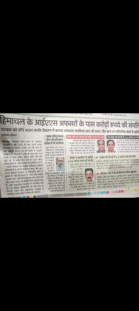 शिमला। हिमाचल प्रदेश के आईएएस अधिकारियों द्वारा वर्ष 2025 के लिए सरकार को सौंपे गए अचल संपत्ति विवरणों ने एक बार फिर यह बहस छेड़ दी है कि क्या केवल सरकारी वेतन के आधार पर करोड़ों रुपये की संपत्ति खड़ी की जा सकती है।